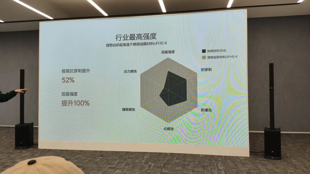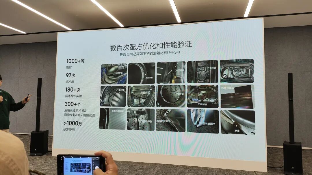 我們開頭提到的那兩個隨便砸的油箱樣品,更耐造的那個就采用了理想自研的不銹鋼材料“UFHS-X”。而對照組,則是行業普遍使用的304L不銹鋼。