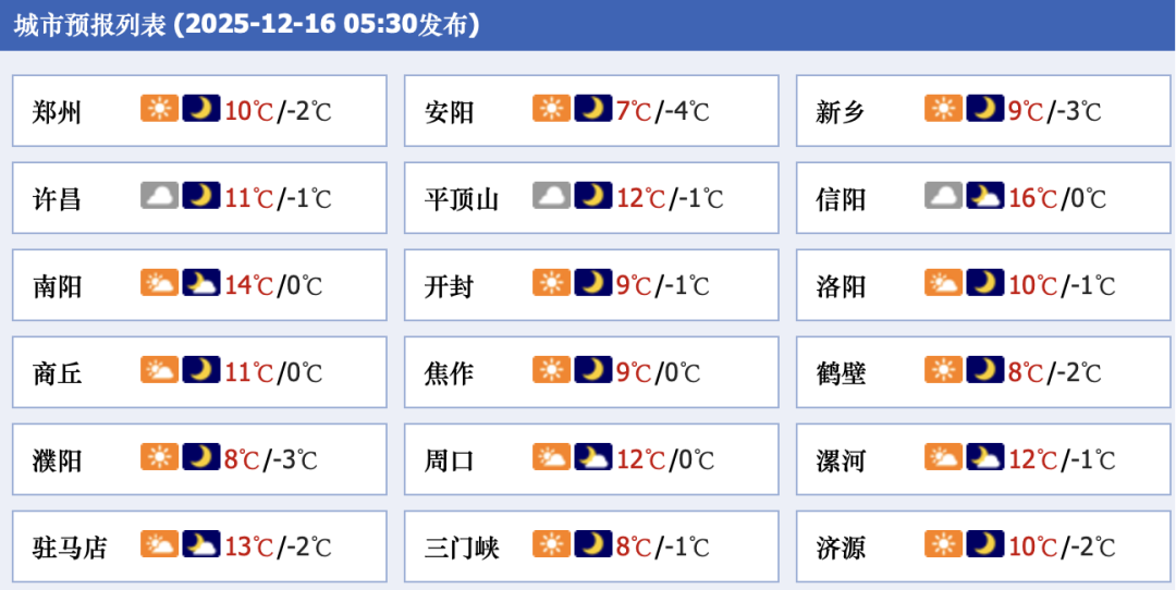 據河南氣象,今天白天到夜里,全省晴天間多云,偏北風3級左右,西部陣風5到6級。最高氣溫:北中部8到10℃;南部14到16℃;其他縣(市、區)11到13℃。