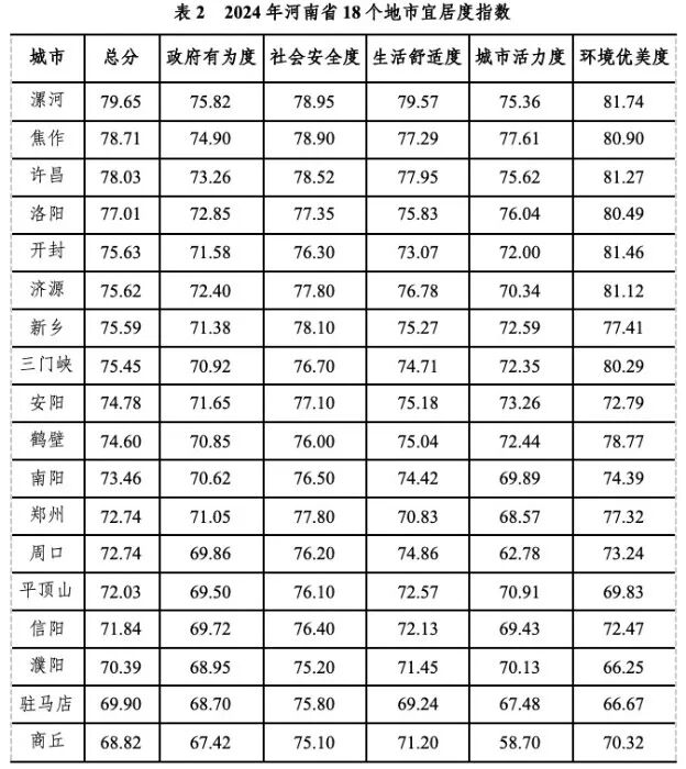 “十四五”期間,漯河、許昌、洛陽、開封宜居指數始終領跑全省。