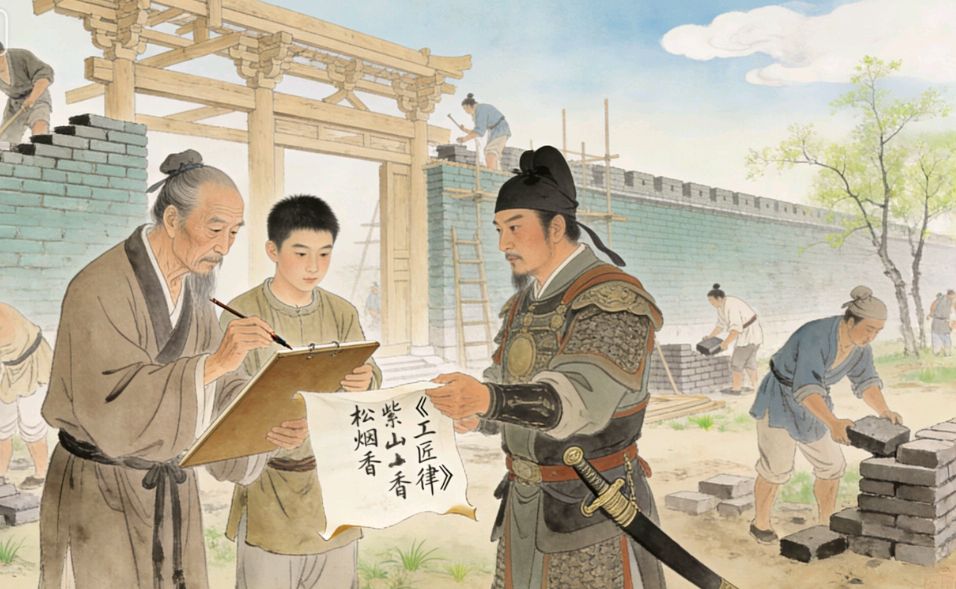 新宮在紫金山下動工,倪瓚每日帶著學徒去寫生。將軍府的參軍常來監工,看他畫梁枋時總問:“為何不用金粉?”倪瓚指著圖紙上的斗拱:“木頭的紋路里,自有日月打磨的光。”參軍笑了,遞給他一張紙,是剛頒布的《工匠律》,墨跡還帶著松煙香。