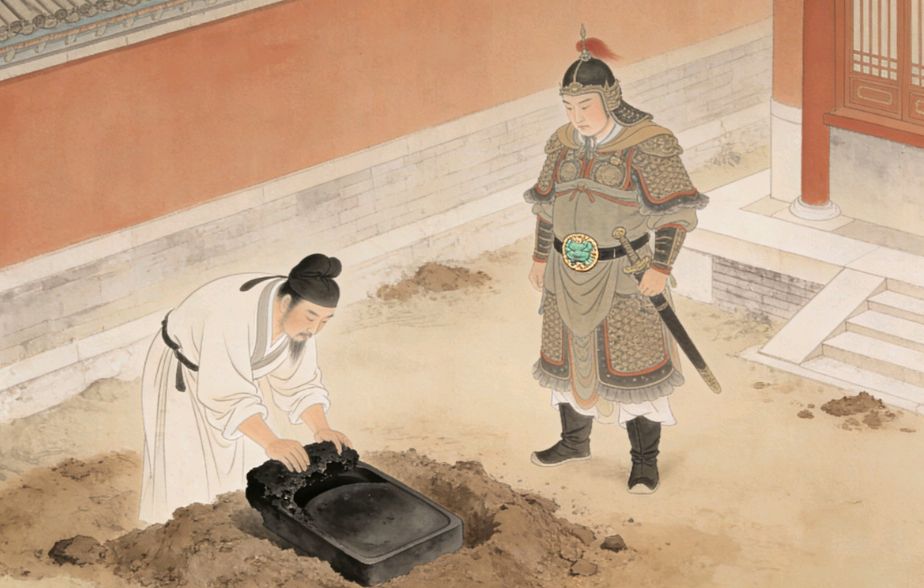 三個月后,捷報傳到應天府。倪瓚站在剛落成的承天門下,看工匠們在匾額上題字。陽光穿過檐角的銅鈴,在地上投下細碎的光斑,像極了他畫里常點的苔痕。他忽然想起那半塊硯臺,此刻應在磚下慢慢化開,與新夯的泥土混在一起,等著某天被某個研墨的人,不經意間融進新的筆畫里。