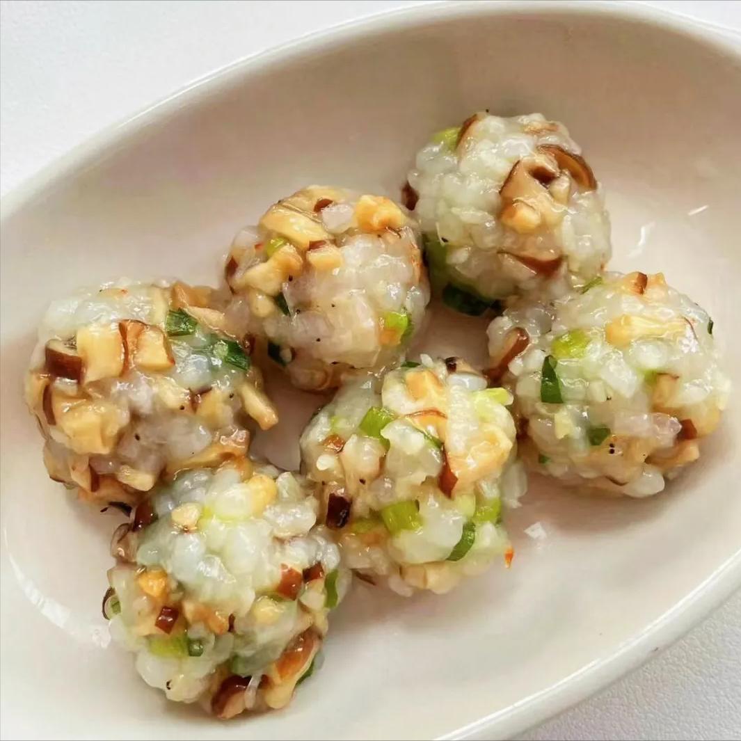 5、炸好或蒸好的丸子撒上蔥花,放至溫?zé)峤o娃吃,一口一個(gè),鮮香入味,還能當(dāng)零食偶爾吃。