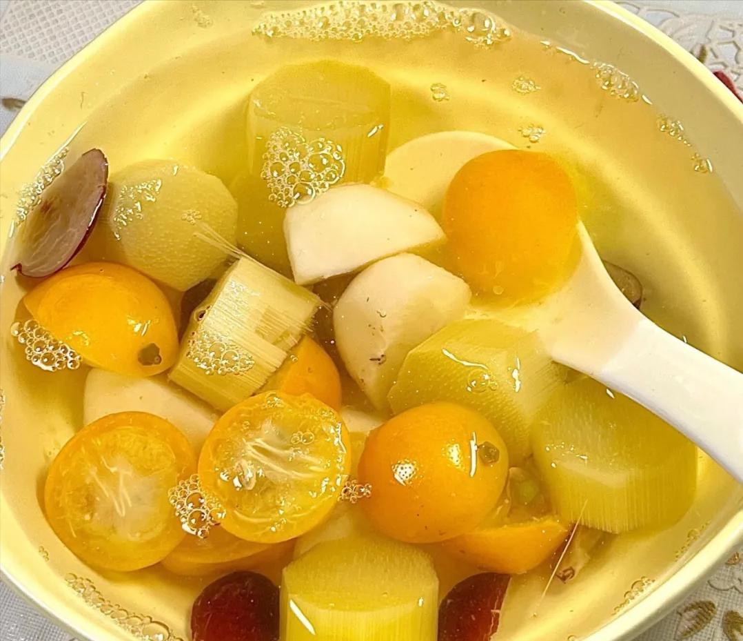 甘蔗和馬蹄補水潤燥,金桔理氣開胃、緩解口干,三者搭配煮水,帶著淡淡的金桔清香,清甜不膩,既能補充津液,又能打開食欲,適合秋冬沒胃口的時候喝。