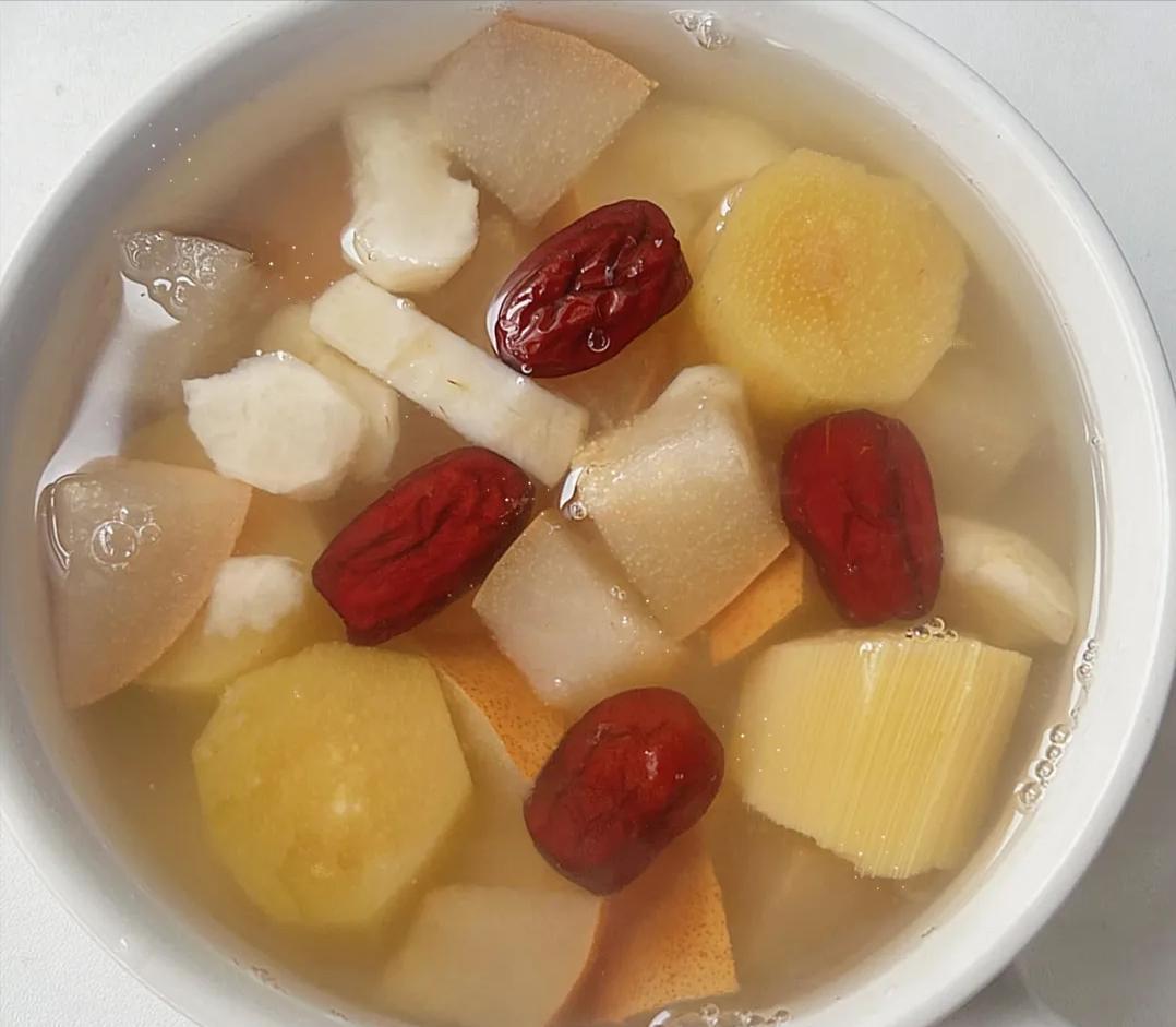 甘蔗補水潤燥,馬蹄清熱生津,雪梨潤肺潤喉,三者搭配煮湯,清甜爽口、溫潤不燥,既能補充津液,又能緩解喉嚨干癢,秋冬喝著渾身舒暢。