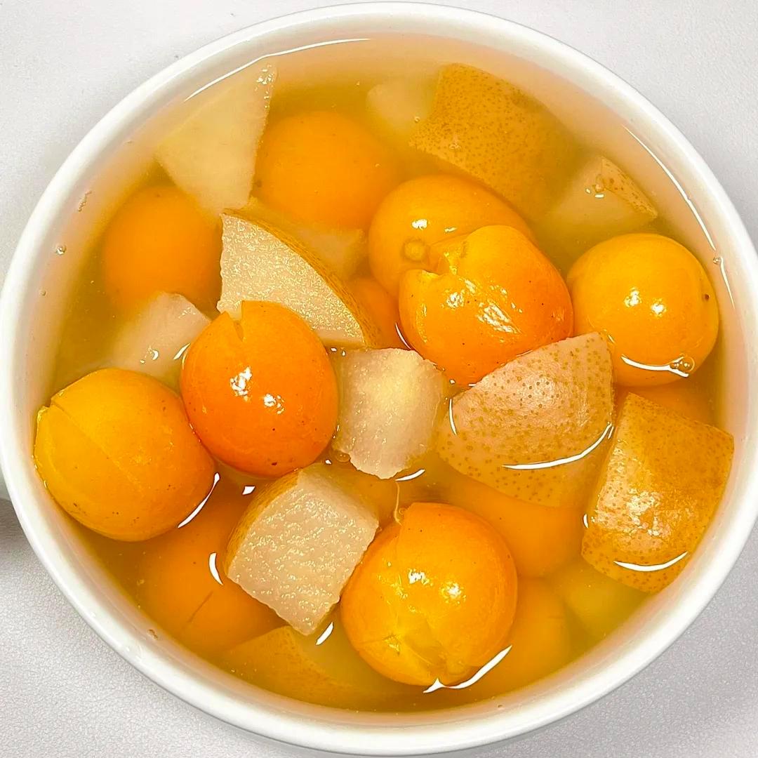蘋果1個、金桔8顆、雪梨1個、冰糖12克、清水900毫升、枸杞5克