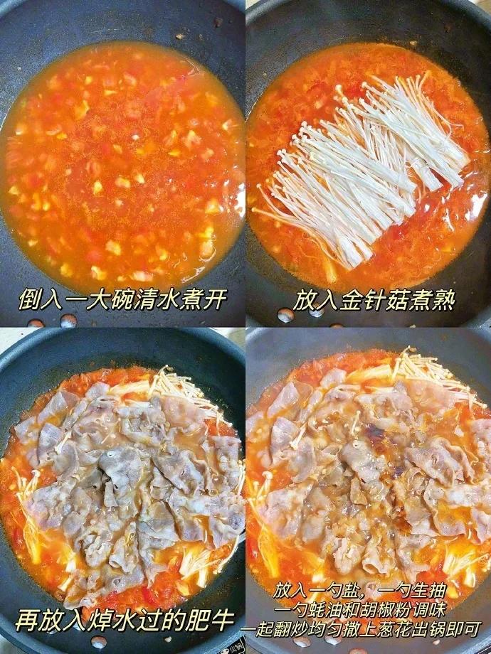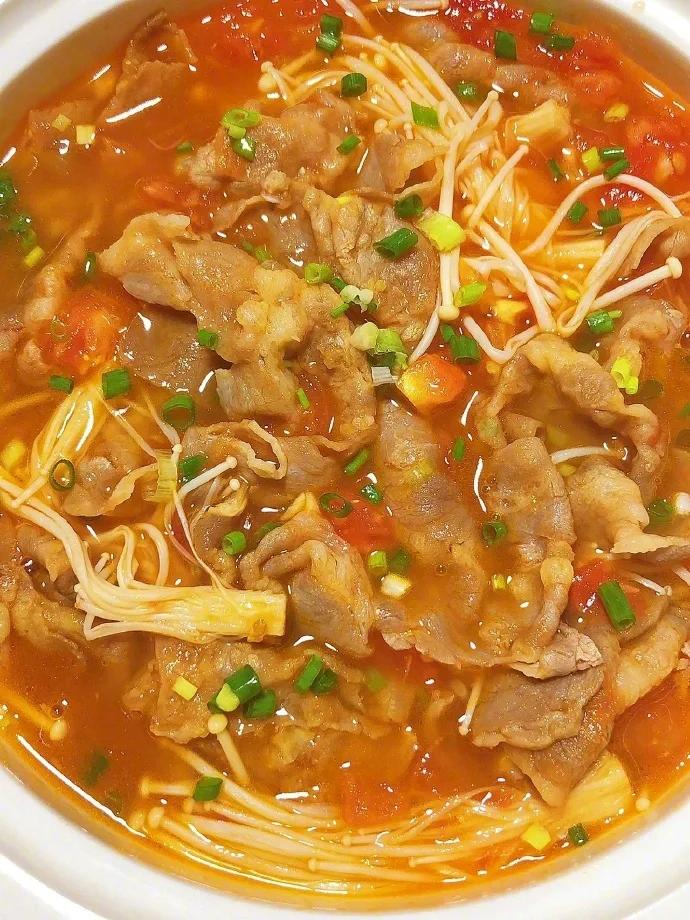 湯汁酸甜濃郁,肥牛鮮嫩不膩,金針菇吸滿了湯汁,每一口都鮮香爽口,不僅好吃,還能補充蛋白質,是老少皆宜的家常湯菜。