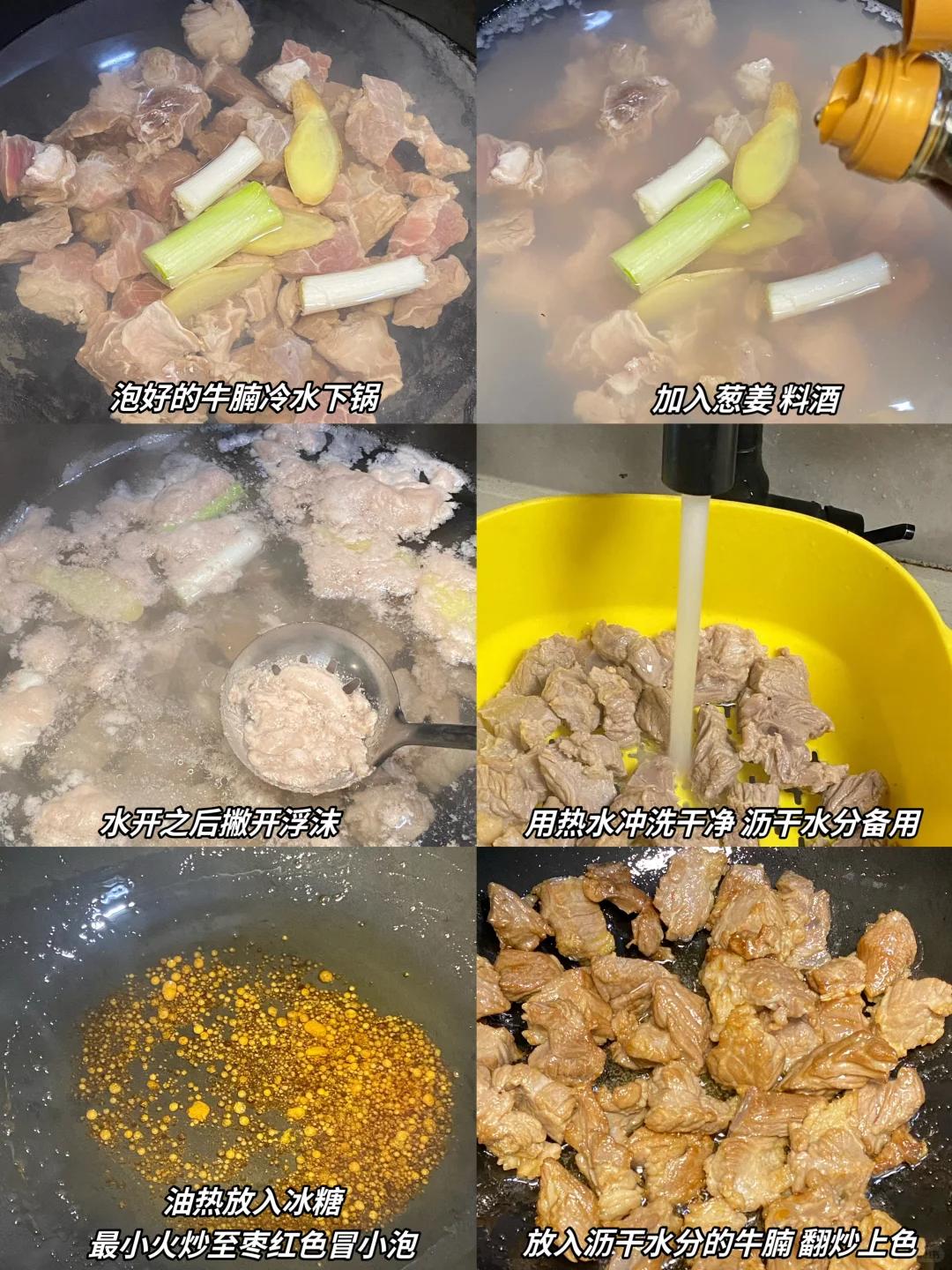 肉香混著番茄的酸甜,暖身又養(yǎng)胃。牛腩選帶筋的部位,切成大塊,用清水泡半小時(shí)去血水,冷水下鍋,加姜片、料酒焯燙,撇凈表面的浮沫后,用溫水把牛腩沖干凈,避免肉質(zhì)變柴。