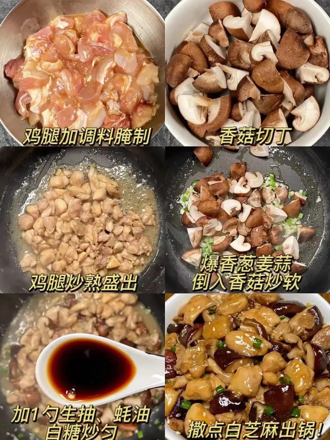 然后把炒好的雞肉倒回鍋里,翻炒均勻后燜五分鐘,讓雞肉充分吸收香菇的香味,最后加少許鹽和胡椒粉調(diào)味,撒上蔥花即可。