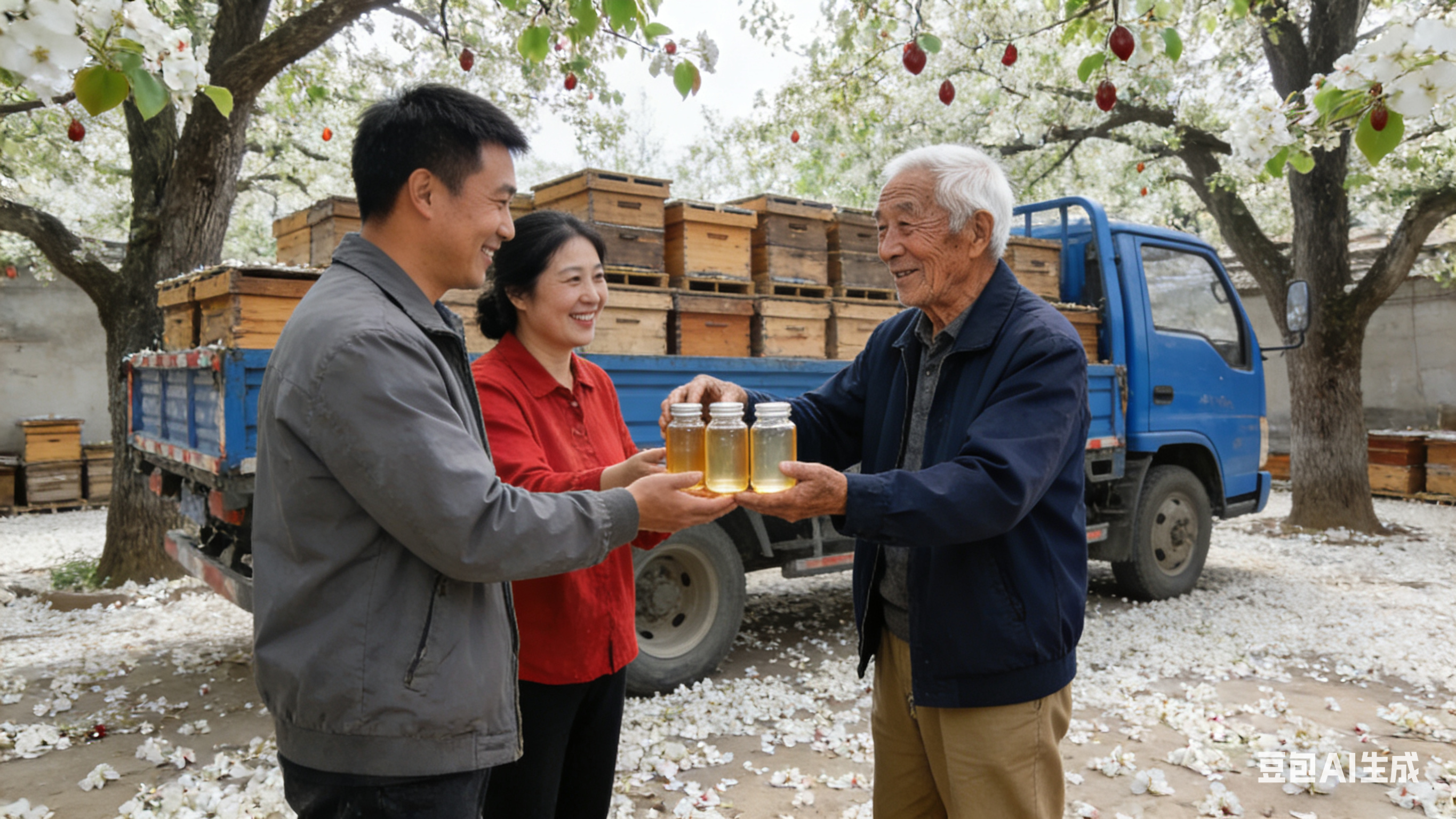 紅棗樹終于過了花期,米色的花瓣凋落得遍地都是,姑爺爺帶著他的蜂箱就要走了,他要去尋找新的“蜜源”,他拿出幾瓶蜂蜜來,非要留給父親母親表示謝意。于是,從夏日起,我的嘴里就彌漫著棗花蜜的香氣,直到又一個米色的花瓣綻放時季。