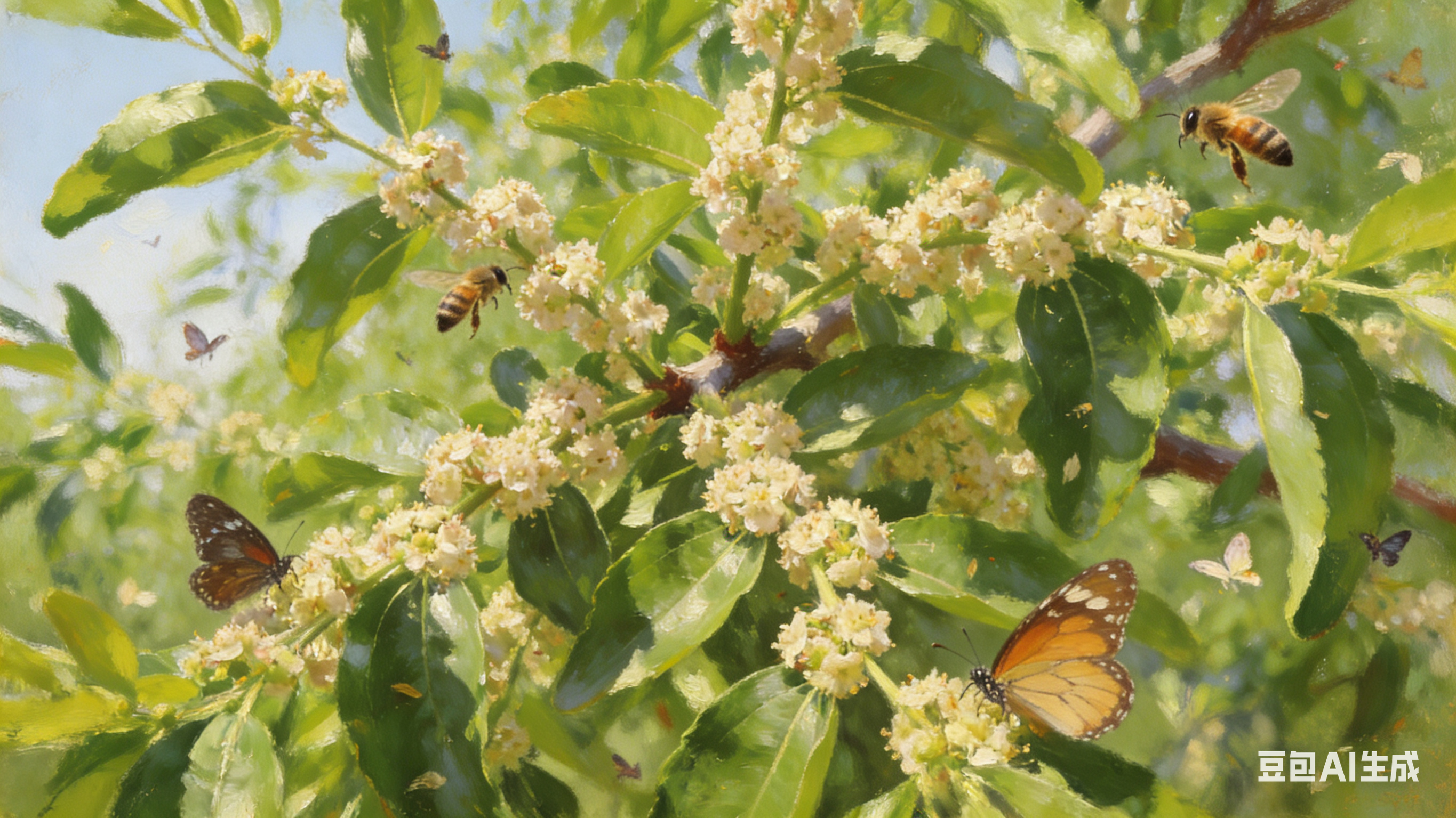 初夏的太陽火辣辣的,他把閃亮的陽光均勻地涂抹在一棵黃黃綠綠的棗樹上——綠的是青翠欲滴的棗葉;黃的,或者說是米色的,是一粒粒密密麻麻的棗花。棗樹上蜂戲蝶鬧,蝶舞蜂鳴,喧囂熱鬧著。這些場景我很熟悉,稱得上耳熟目詳,因為我家的老院子前也曾有過一株紅棗樹的。
