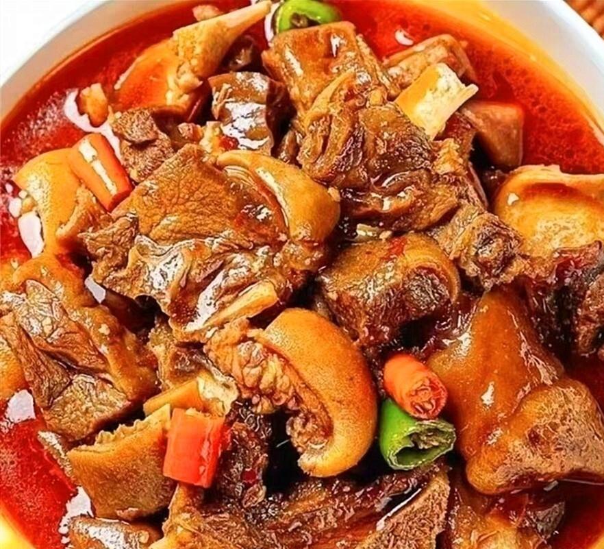 東山羊自宋朝起就是貢品歷史光環拉滿。 它的體型在羊中算大的能長到百八十斤。 做法也最多變:紅燜、清湯、干煸甚至用椰汁來燉。 紅燜做法最見功夫羊肉要先用蒜蓉、姜末、香料、胡椒粉腌制入味再加入高湯和豆腐慢慢煨直到湯汁金黃濃稠羊肉酥爛到幾乎脫骨。