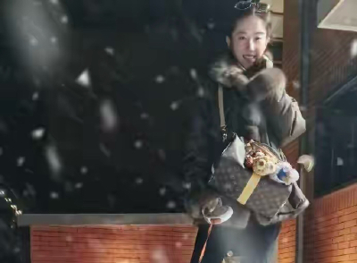 同一天北京初雪,別人忙著打卡,她曬出素顏和狗狗在院子里撒歡的瞬間,鏡頭干凈,12萬外套反而成了配角