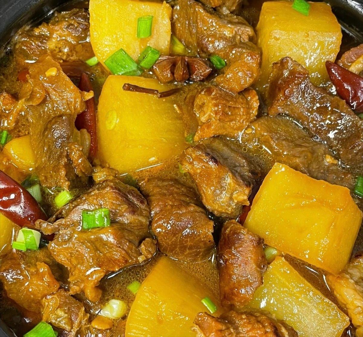 【食材】:牛腩,白蘿卜,姜片、蔥段、八角,香葉,生抽,老抽,料酒,冰糖