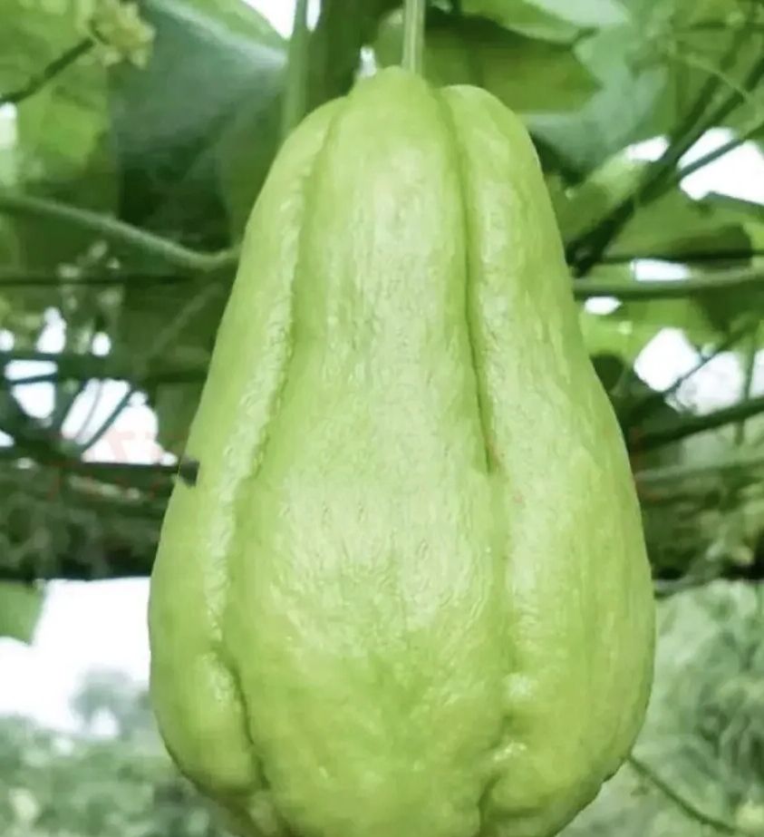 佛手瓜,我們當地叫狗兒瓜,可能是多產的意思,不過那天那人說它一窩栽下,當年才收十幾斤瓜,第二年收幾十斤瓜,第三年才收兩三百斤瓜,我覺得它還是挺“穩重”的,就像它的學名因它的形象而定義。