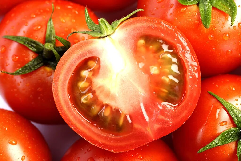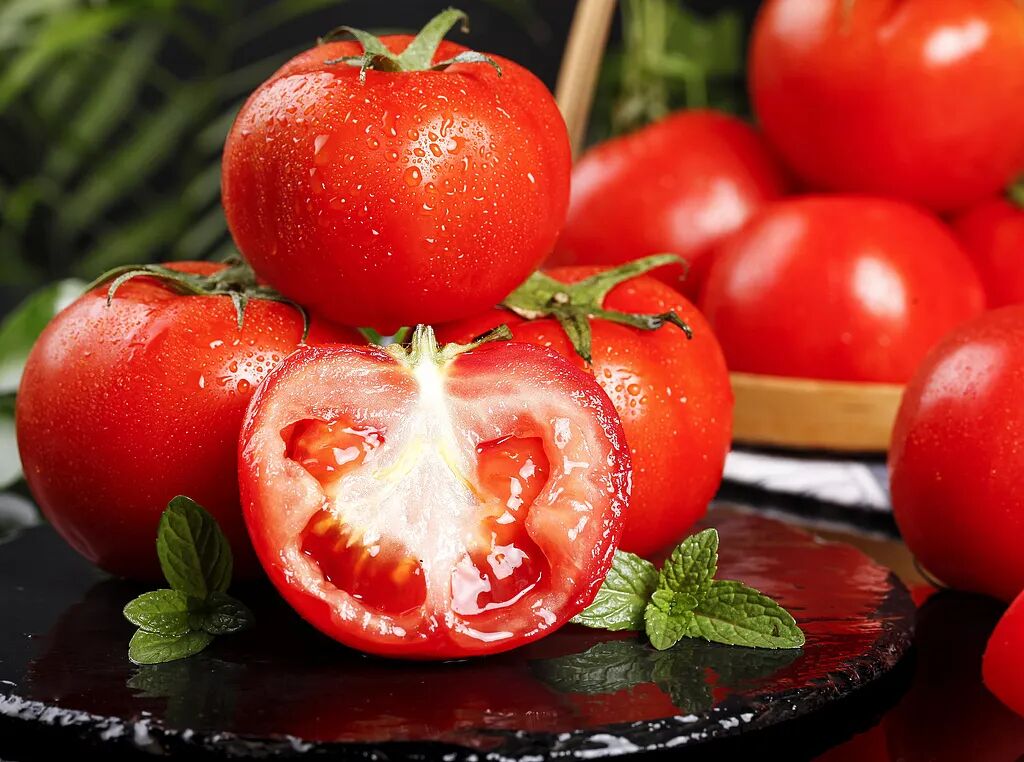 番茄紅素是天然的紅色色素,因此常見的紅色西紅柿是番茄紅素的良好來源。一般情況下,每100克紅色果肉部分約含2~8毫克番茄紅素,并且西紅柿顏色越深紅、番茄紅素含量往往越高。