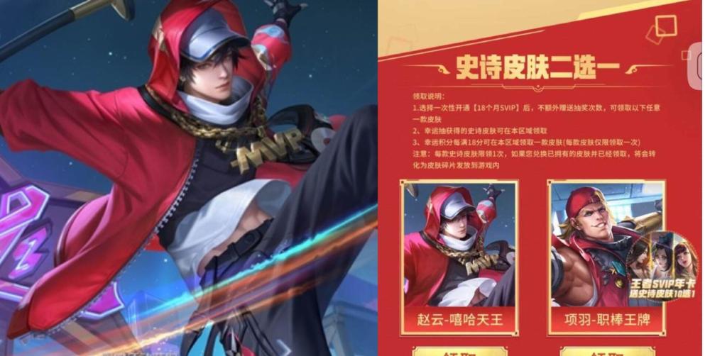 限時(shí)返場(chǎng):趙云“嘻哈天王”與項(xiàng)羽“職棒王牌”需通過(guò)QQ區(qū)活動(dòng)獲取,開通半年超級(jí)會(huì)員可必得一款。