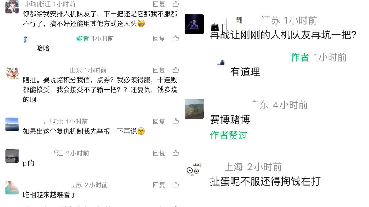 但是如果你選擇不服,下一把如果你還繼續開游戲,你就會匹配到對面的玩家,再次和他切磋一把。而且甚至還有玩家說,想要體驗這個功能,還需要花點券!
