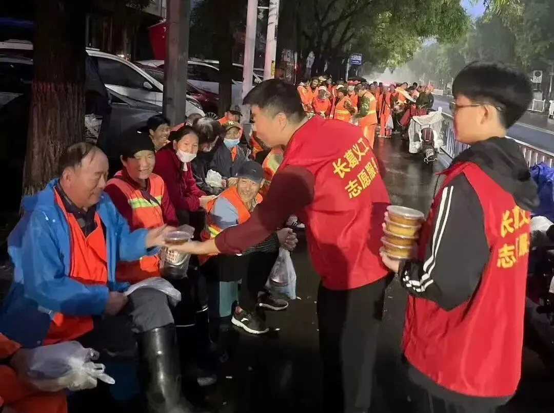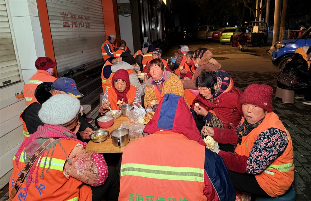 從第一頓早餐就開始來的環衛工人胡明府感慨:“內心滿是感激,這是實實在在的大愛。和大家伙兒一起吃頓熱乎飯,心里特別暖。”