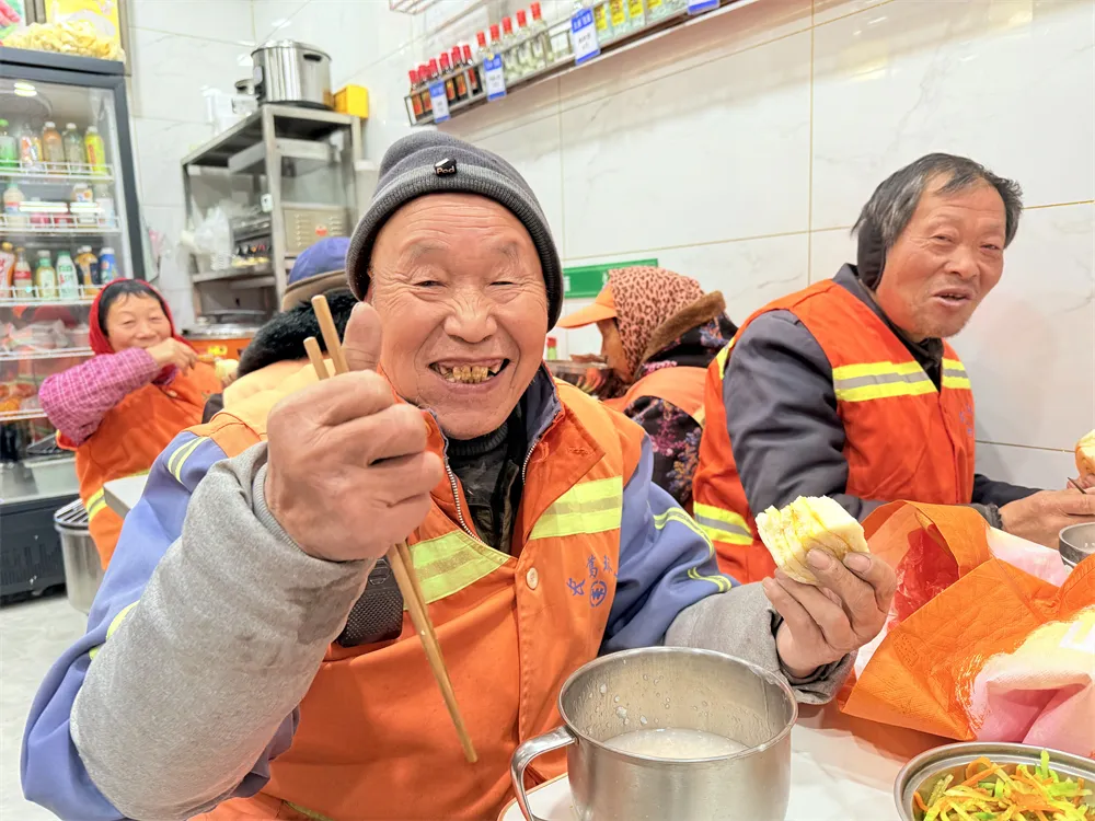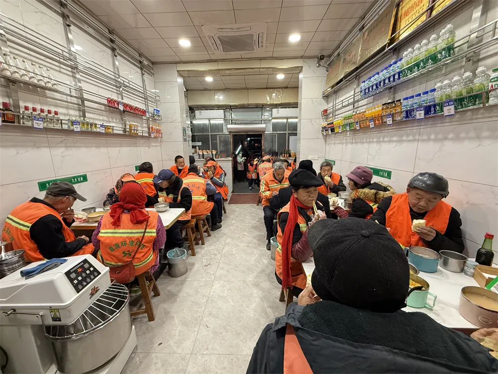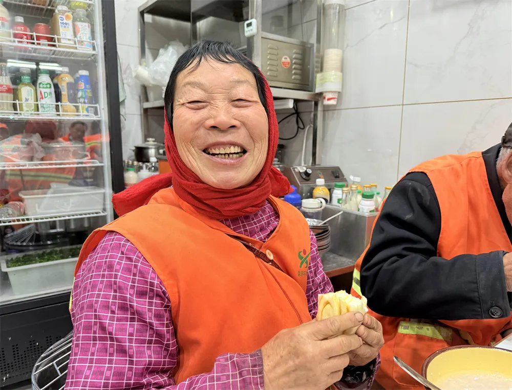“饃菜湯都合胃口,每次都是高高興興來、高高興興走。”環衛工人賀香云說,“夏天有冰水,冬天有暖茶,每周日的愛心早餐,早就成了我生活的一部分。”