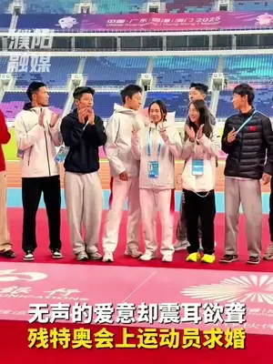 殘特奧會撐桿跳項目奪冠后,張萌宇向同為聽障運動員的女友徐娟求婚。手語無聲,這份愛意卻響徹全場!祝幸福!@三顆星星 @Lee_ec