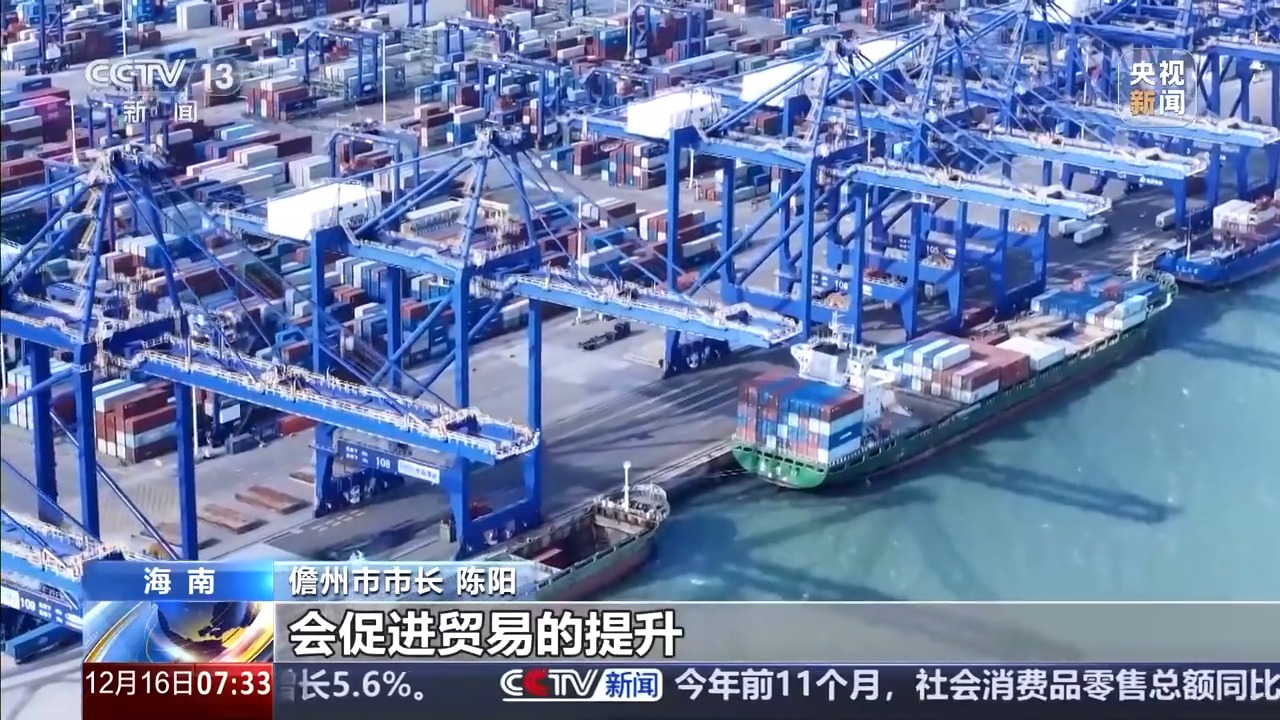 儋州市市長 陳陽:洋浦港的集裝箱量,我們去年是200萬標箱,今年將達到350萬標箱,在1~11月份,我們的平均增速是53.5%,在全國所有港口里面增速是排第一位。我們正在打造港、產、城、科一體化發展的這種格局。隨著港口不斷的能力擴大,會極大的帶動整個產業的發展,會促進貿易的提升,會不斷的完善一些生產性服務業和生活性服務業的一些發展。