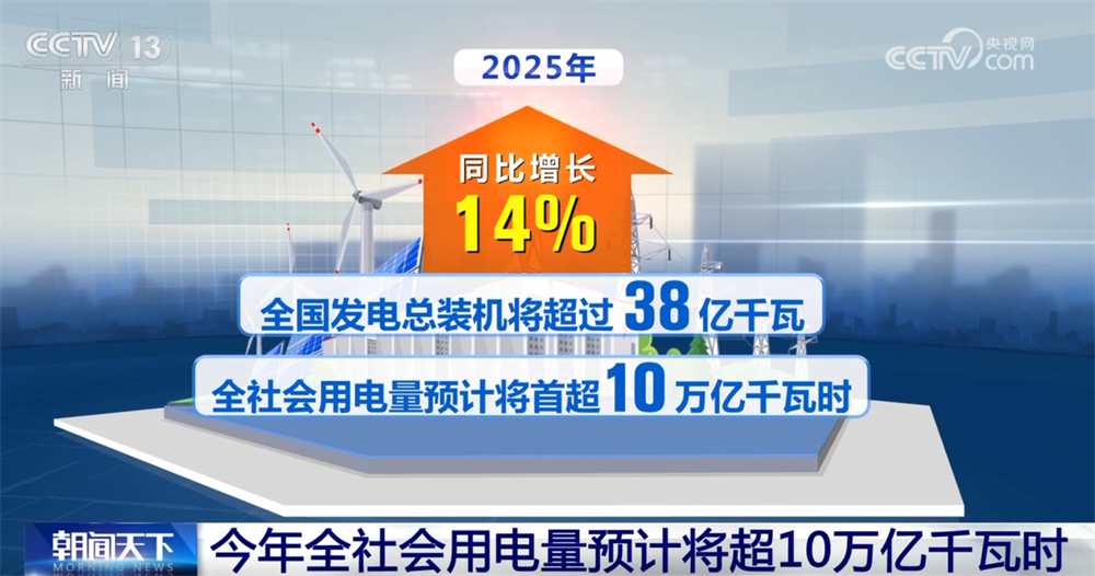 國家能源局最新預測數(shù)據(jù)顯示,2025年,全國發(fā)電總裝機將超過38億千瓦,同比增長14%,全社會用電量預計將首超10萬億千瓦時。從縱向比,這是我國2015年全年全社會用電量的約兩倍;從橫向看,高于歐盟、俄羅斯、印度、日本全年全社會用電量的總和。