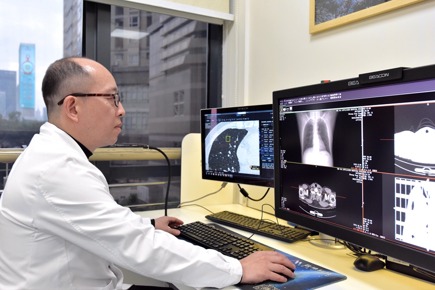 醫(yī)生在智能CT肺結(jié)節(jié)智能篩查系統(tǒng)協(xié)助下閱片。受訪單位供圖