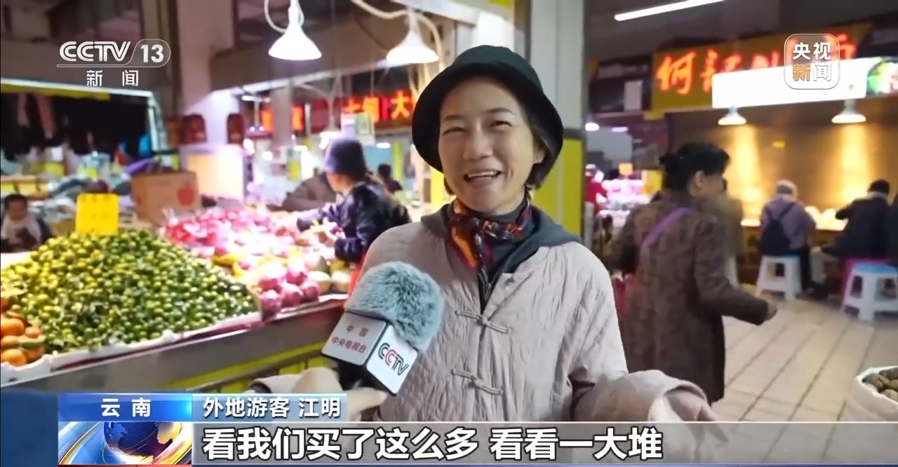 外地游客 江明:看我們買了這么多,看看一大堆。本來我們就來玩兩天,剛剛我們和哥哥姐姐也說,以后要到這里來住上個一個月兩個月,好好體驗一下這邊的生活。