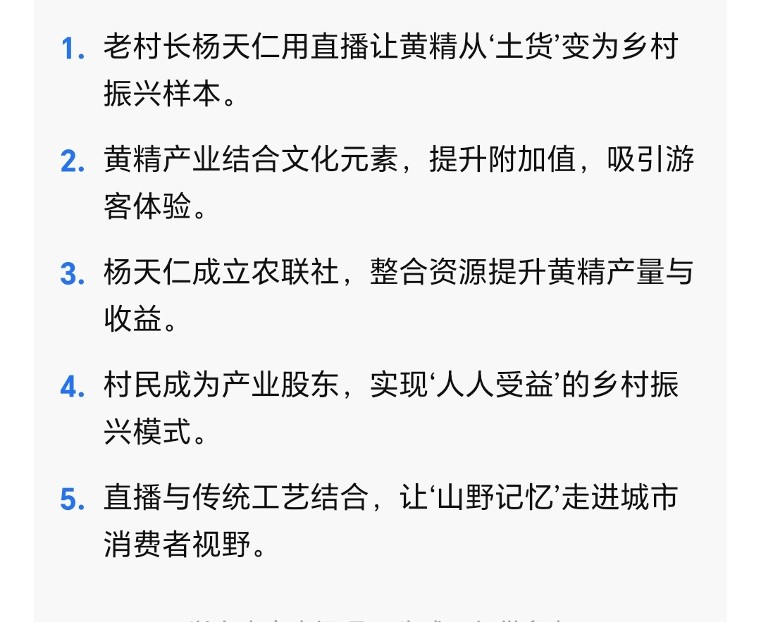 這種變革的深層邏輯,是楊天仁對"數字鄉村振興經濟密碼"的破解。他將加工坊搬進廢棄泥巴寺小學,昔日的教室飄滿黃精藥香,蒸鍋蒸汽里升騰著村民的希望。楊天仁的巧思不止于此:他在直播間開設“九蒸九曬慢直播”,鏡頭24小時記錄黃精從初曬到第九次蒸制的全過程,讓消費者看見“古法工藝”的較真。正如他常說的:“我們賣的不只是黃精,是城里人忘不了的山野記憶,是村里人守得住的鄉土根脈。