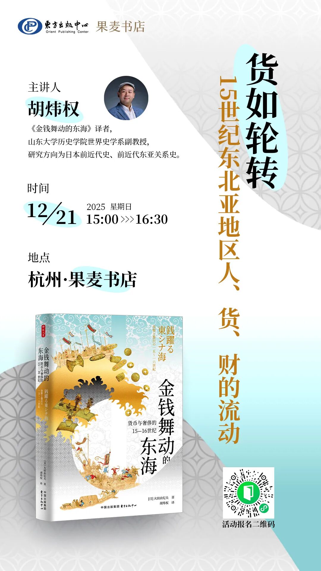 本次講座中,《金錢舞動的東海》的譯者胡煒權將帶領聽眾走進“大航海時代”前夜的東北亞世界,重新認識一個并不封閉的“海禁”時代,探討那些在風浪中重構前近代東北亞格局的力量。