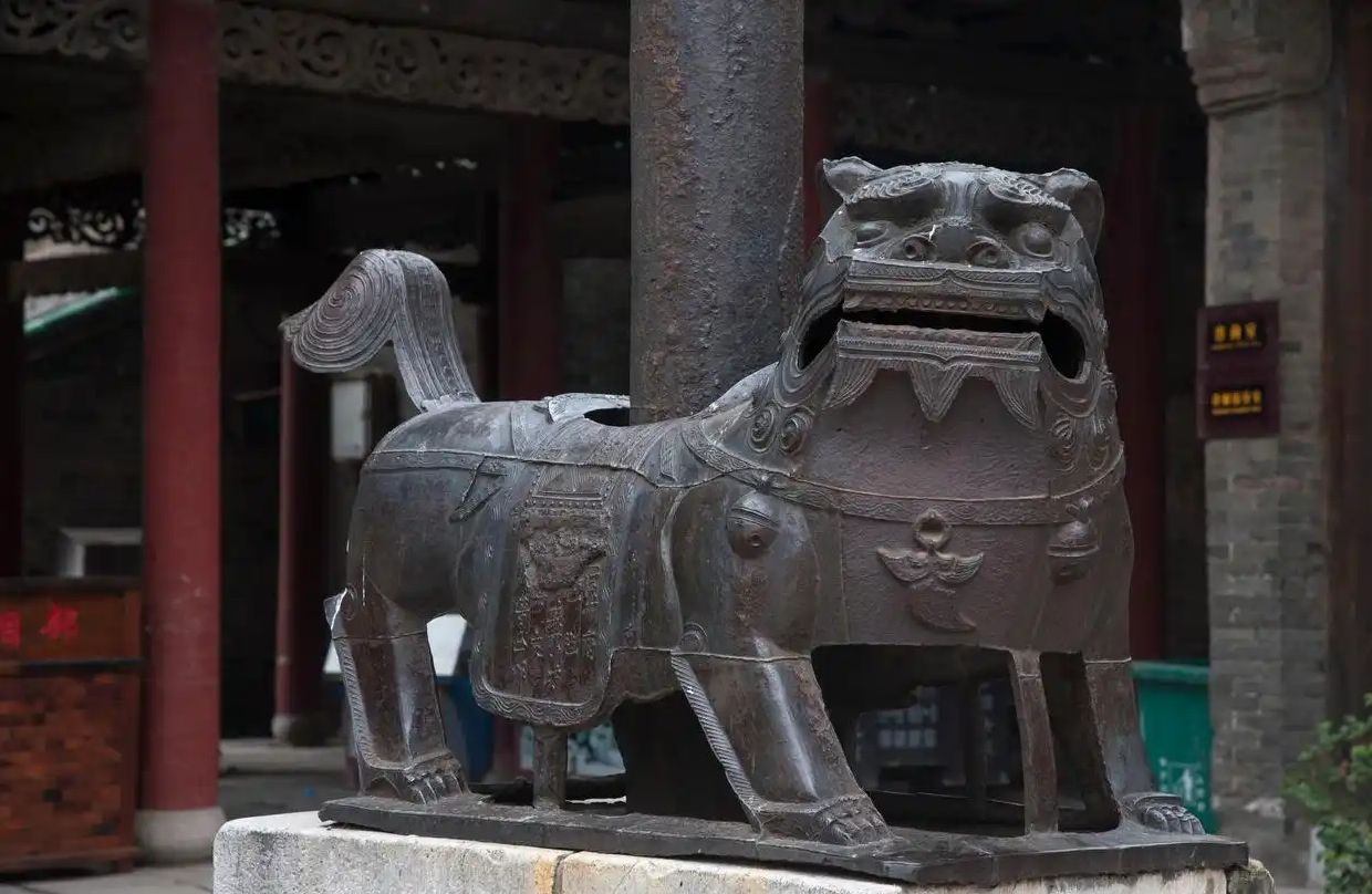 基座上的鑄鐵獅子雖歷經(jīng)風(fēng)雨,