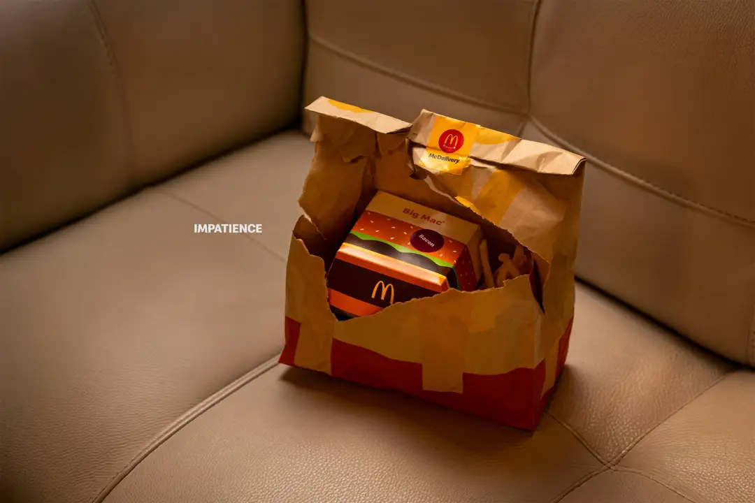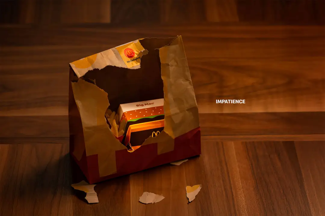 “饑餓從不跟耐心客氣!” 沒有花里胡哨的設計,只聚焦干飯人最真實的急吼吼 —— 外賣一到,哪有什么 “完美拆箱”,滿腦子都是直奔漢堡的迫切。視覺海報把 “急性子” 焊死在畫面里,不管是撕包裝的利落還是咬下第一口的急切,都讓網友直呼 “世另我”,干飯人的 DNA 狠狠動了!
