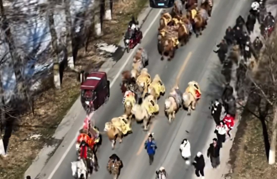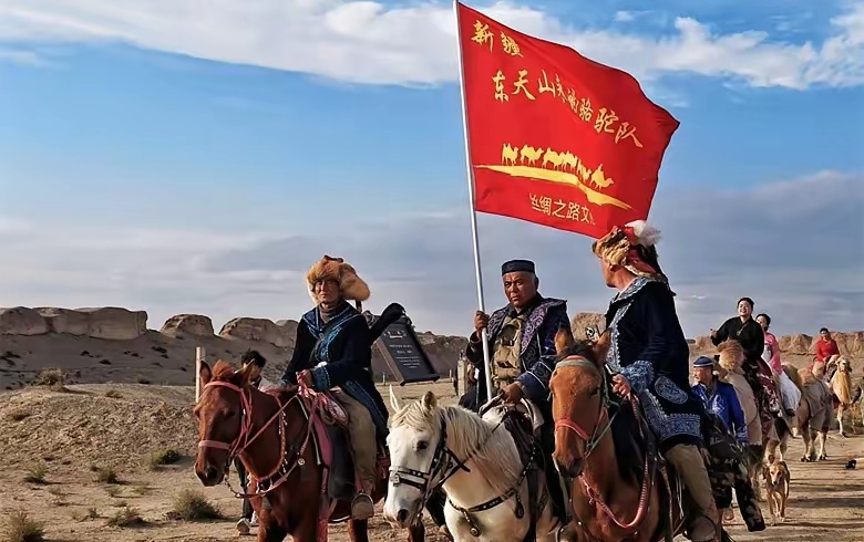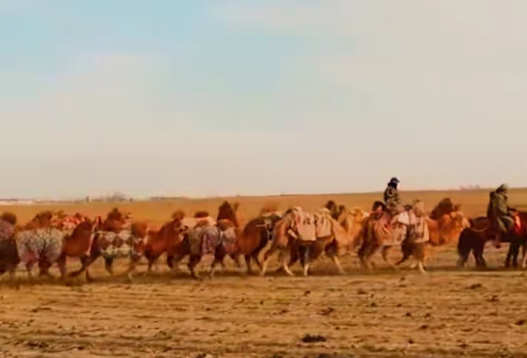 雪峰駝影映蒼穹,漫卷黃沙踏疾風。