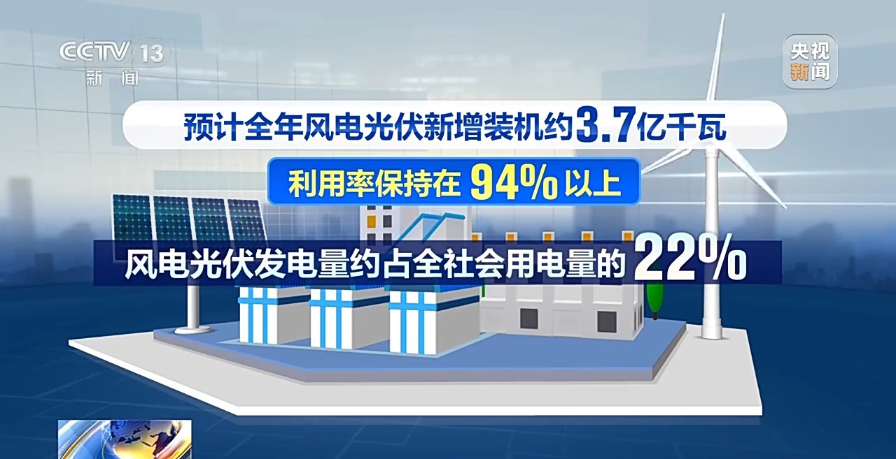 新能源實現更高質量躍升式發展。目前,我國第一批風電光伏基地基本建成投產,第二批、第三批已建成投產約5000萬千瓦,預計全年風電光伏新增裝機約3.7億千瓦,利用率保持在94%以上,風電光伏發電量約占全社會用電量的22%。