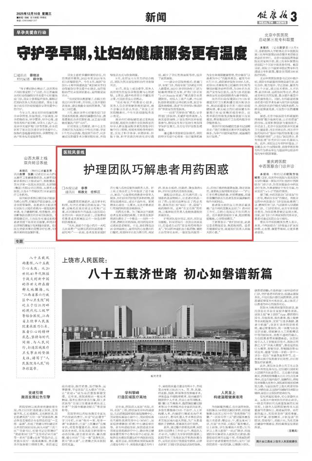 12月10日,《健康報》3版以《護理團隊巧解患者用藥困惑》報道溫縣人民醫院先進經驗。《健康報》是國家衛生健康委員會主管的,具有權威性和影響力的全國性衛生行業報。