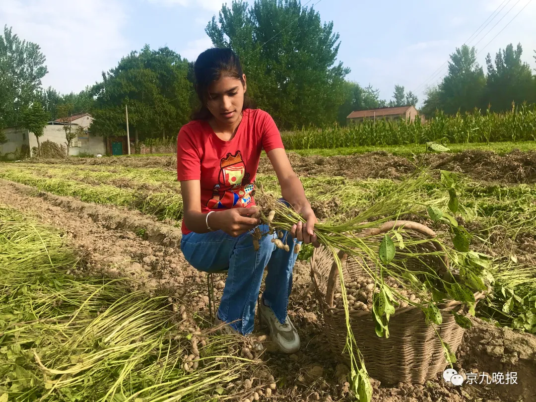 記者跟隨王佳音來到田間,見到王佳音的公婆正在田里收花生,王佳音一邊帶著3歲的兒子,一邊在一個小凳子上坐下來,幫公婆干農活。
