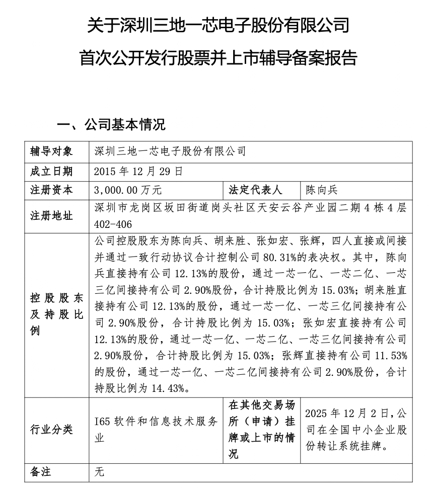 瑞財經 吳文婷 近日,深圳三地一芯電子股份有限公司(以下簡稱“三地一芯”)啟動IPO。