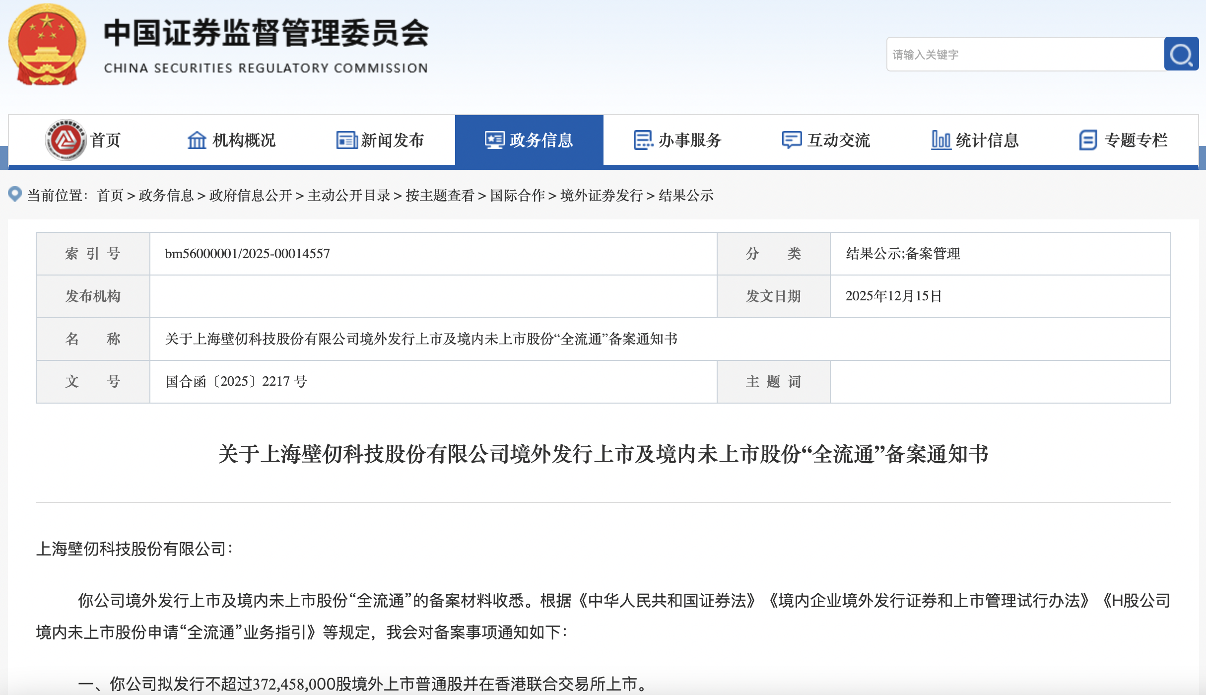 瑞財經 吳文婷 12月15日,據證監會官網披露,上海壁仞科技股份有限公司(以下簡稱“壁仞科技”)境外發行上市及境內未上市股份“全流通”的備案材料收悉,公司擬發行不超過372,458,000股境外上市普通股并在香港聯合交易所上市。