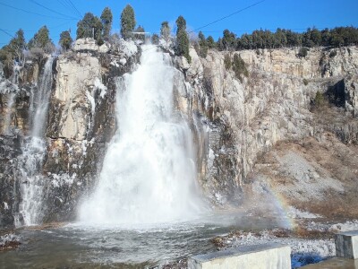 新鄉(xiāng)南太行輝縣冬天石嶺隧道口瀑布壯觀偶遇彩虹??好運連連