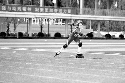 2025年山西省特奧滾球特奧輪滑比賽中,運動員奮力沖刺。李勇攝/光明圖片