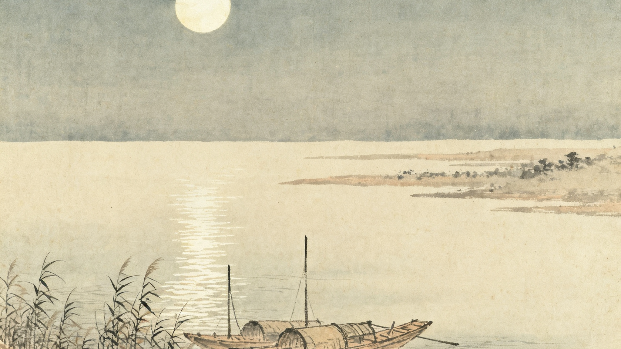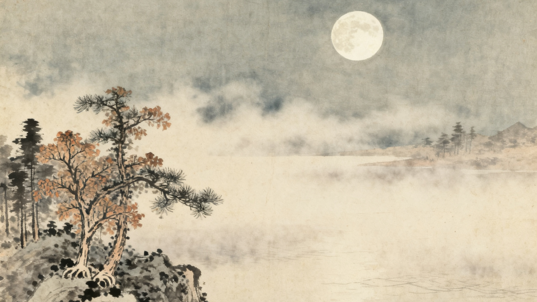 畫面的構圖簡潔而巧妙。夏珪采用了“半邊”構圖法,將大部分筆墨用于描繪湖水和天空,只在畫面的一側勾勒出淡淡的山巒和樹木。這種構圖方式不僅突出了湖水的廣闊和天空的高遠,還營造出一種空靈、悠遠的意境,讓人仿佛置身于洞庭湖的秋夜之中,感受到大自然的寧靜與神秘。