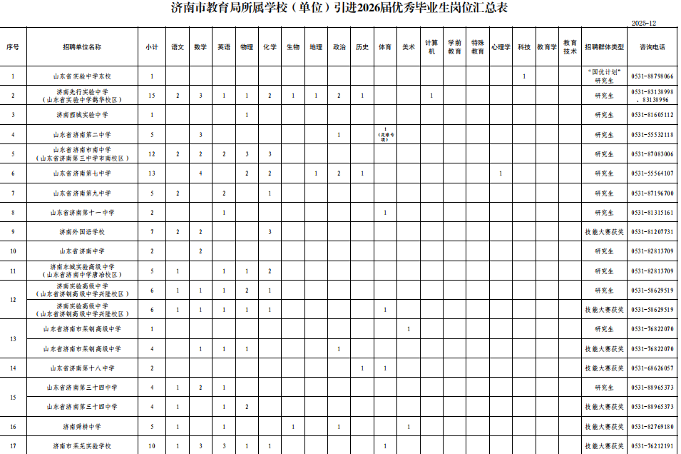 1.濟南市教育局所屬學校(單位)引進2026屆優秀畢業生崗位匯總表.pdf