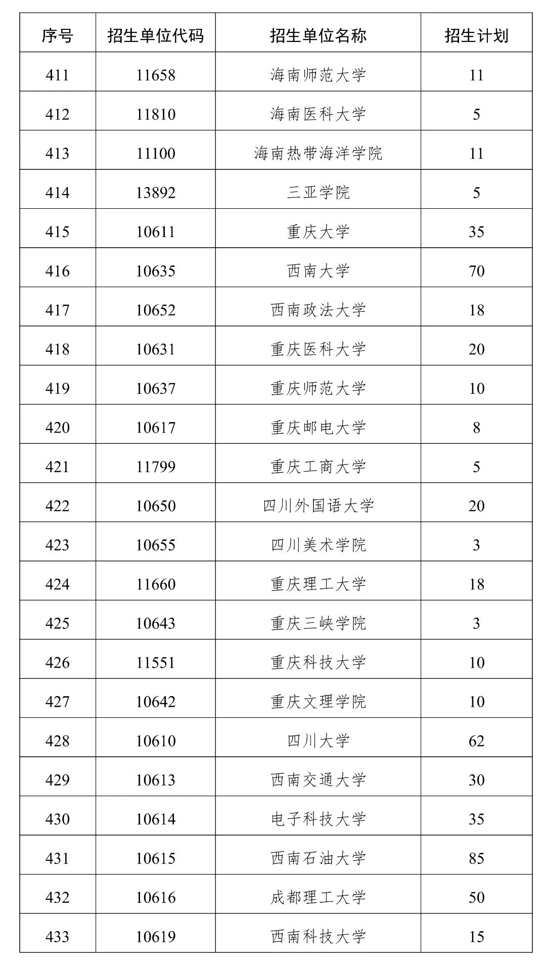 附件:2026年退役大學生士兵專項碩士研究生招生計劃