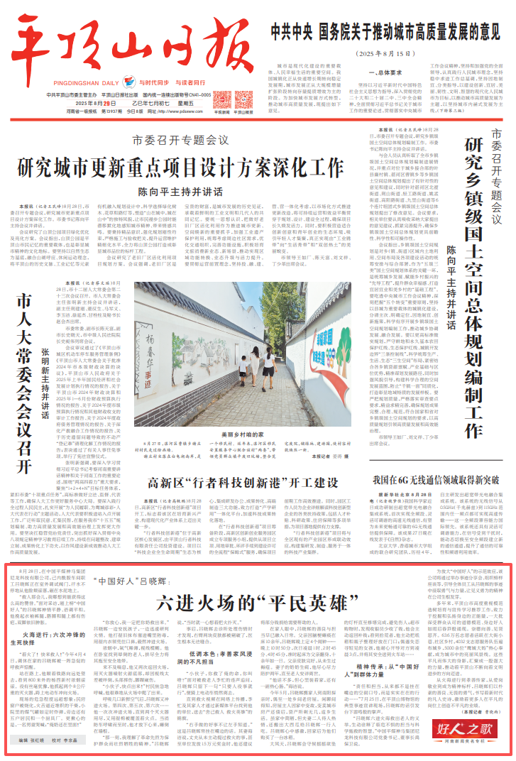 2025年8月29日《平頂山日報》1版刊發