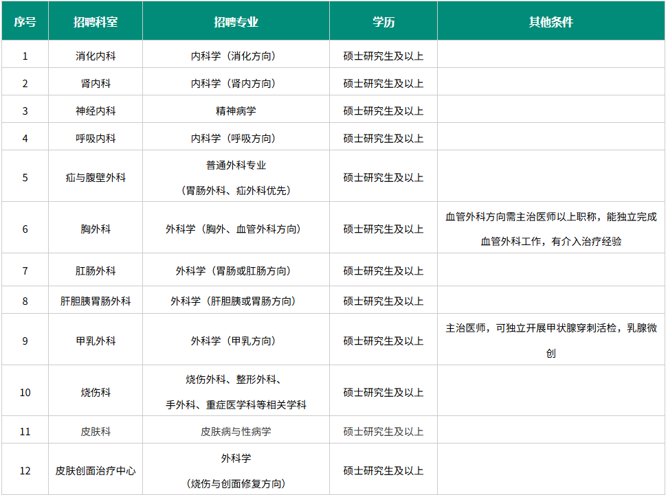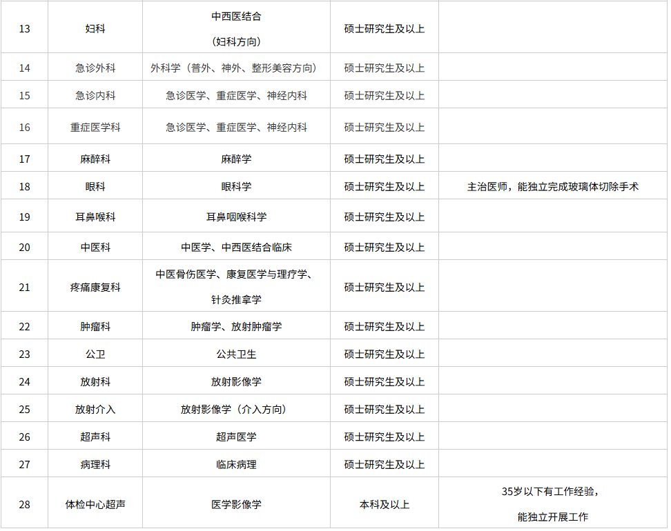 醫(yī)師崗位招聘條件如下,有三甲醫(yī)院工作經(jīng)歷、已完成規(guī)培以及科研能力強者優(yōu)先考慮。