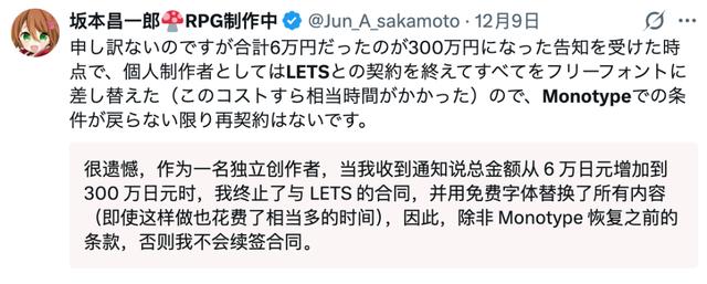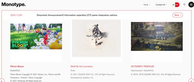 它終止了 Fontworks 一項面向游戲開發者的方案。這個方案原本可以讓開發者每年花 380 美元,就能把日文字體集成到游戲里。