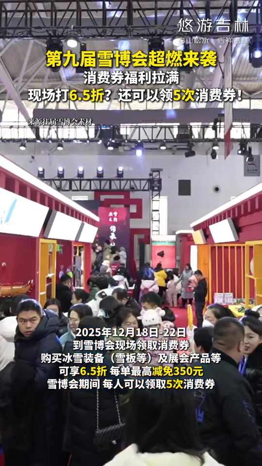到雪博會現(xiàn)場領(lǐng)取消費(fèi)券購買冰雪裝備(雪板等)及展會產(chǎn)品等可享6.5折,每單最高減免350元,雪博會期間,每人可以領(lǐng)取5次消費(fèi)券。
