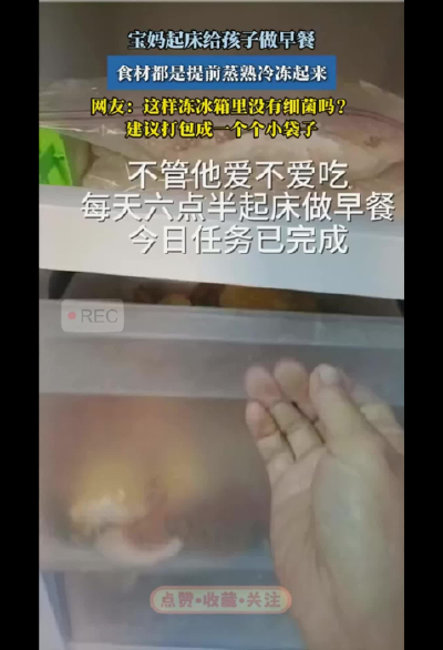 寶媽起床給孩子做早餐,食材都是提前蒸熟冷凍起來。