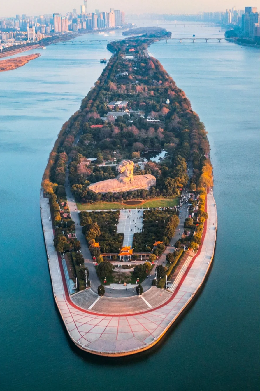 橘子洲是湘江名洲,位于湖南省長沙市岳麓區(qū)的湘江中心,是湘江下游眾多沖積沙洲中面積最大的沙洲,由南至北,橫貫江心,西望岳麓山,東臨長沙城,四面環(huán)水,綿延十多里,狹處橫約40米,寬處橫約140米,形狀是一個長島。橘子洲介名山城市間,凌裊裊碧波上,被譽為“中國第一洲”。