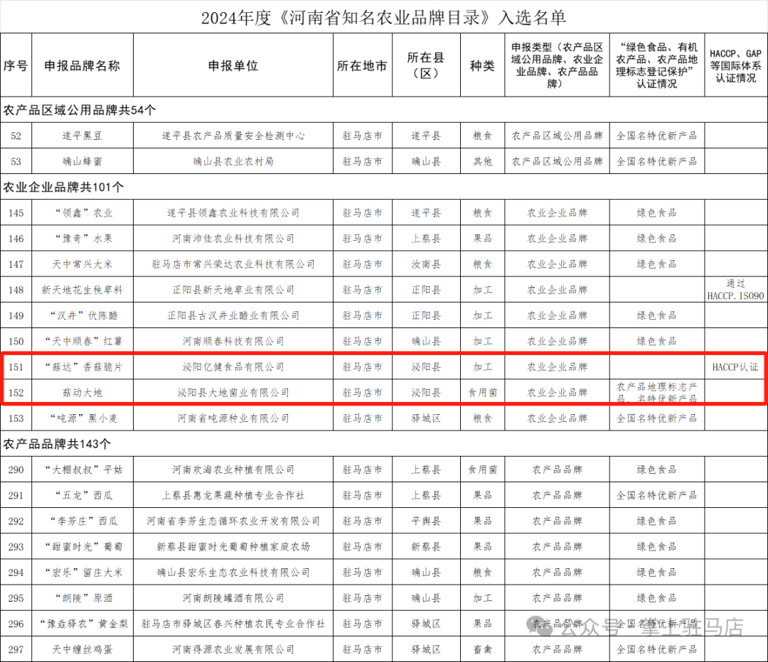 2024年度《河南省知名農業品牌目錄》